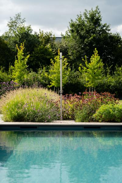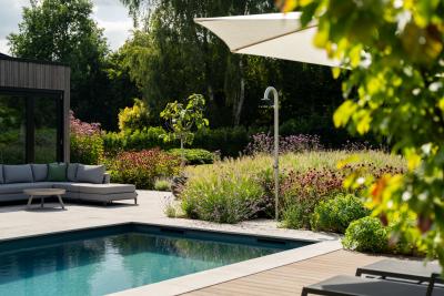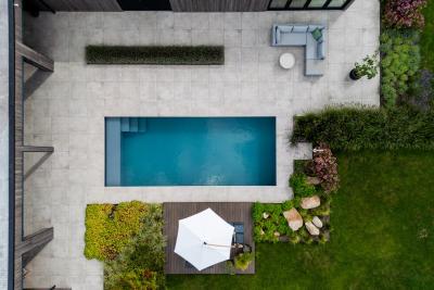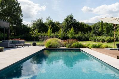 In Enter hebben wij een stijlvol en tijdloos project mogen realiseren. Dit inbouwzwembad, in een antraciete kleur sluit naadloos aan bij de moderne architectuur van de woning. De rustige kleur van het zwembad geeft het geheel een elegante uitstraling en zorgt voor een luxe, minimalistische sfeer in de tuin. Door de combinatie met de hoogwaardige materialen en een verfijnde afwerking vormt dit zwembad een echte blikvanger.