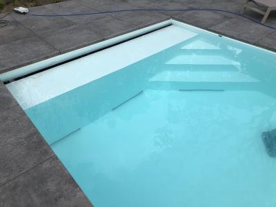 De familie heeft gekozen voor een solar lamellenafdekking. Deze lamellenafdekking zorgt ervoor dat het zwembad veilig en kindvriendelijk afgesloten kan worden. Ook is deze afdekking kostenbesparend en milieuvriendelijk.