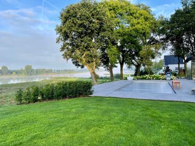 Het zwembad is voorzien van een traditionele ingebouwde hoektrap, met daaraan vast een verhoogde zitbank. De familie kan vanuit de zitbank onder het genot van een drankje, genieten van het prachtige uitzicht over de Rijn. Dit is toch fantastisch!