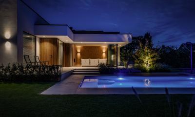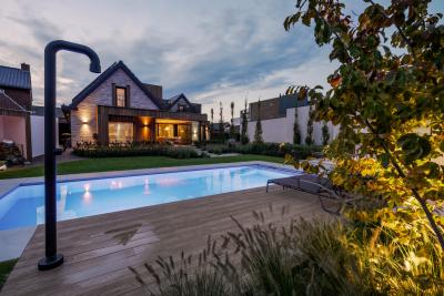 Of je nu ’s ochtends baantjes trekt in het water of ’s avonds ontspant bij het verlichte terras, deze tuin ademt klasse, rust en exclusiviteit.