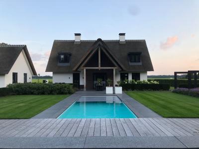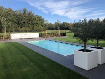 In Uddel heeft Wellux in een stijlvolle landelijke omgeving een prachtig zwembad geplaatst. Deze familie heeft de keuze gemaakt voor een frisse witte kleur. Zo kunnen zij als voordeel, optimaal genieten van de schone waterkleur. Ook bij minder mooie dagen. In afstemming met de hovenier is er strategisch nagedacht over de lijnen in de tuin. Dit maakte dat het zwembad exact op een bepaalde tegellijn geplaatst moest worden. Aangezien Wellux, maatwerk zwembaden produceert kon deze wens in vervulling gaan.