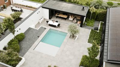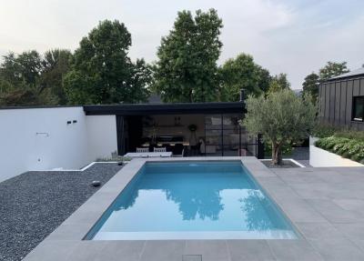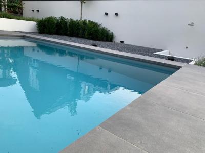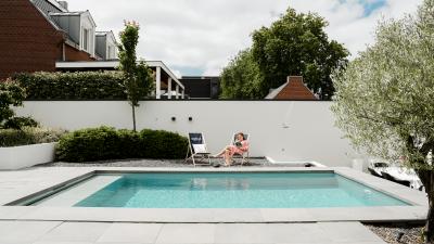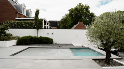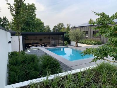Toch wel het meest unieke aan dit project is de ligging van het zwembad. Denk hierbij aan diverse niveauverschillen in de tuin waarbij het zwembad aan de achterzijde als het ware uit de grond steekt. In samenwerking met de hovenier is dit vakkundig gerealiseerd.