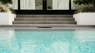 In ’t Groene Hart mocht Wellux in een ruime tuin een prachtig design zwembad realiseren. De familie heeft gekozen voor een grijze tint wat resulteerde in een exclusieve uitstraling passend bij het geheel van de tuin. Het zwembad heeft een verhoogde zitbank met daaraan een rechte hoektrap als uniek detail. Ook aan verlichting is gedacht.
