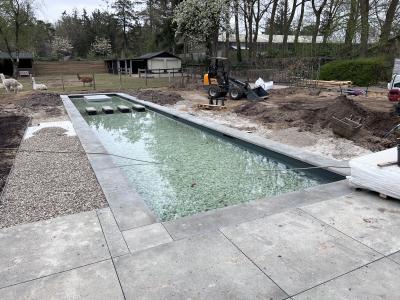 In Garderen is een zwemvijver van 18 meter geplaatst, dit was een mooie uitdaging. Met een zwemvijver in de tuin begint de natuur al meteen als u de deur uitloopt. Deze familie heeft minder onderhoud aan de zwemvijver, omdat het water op een natuurlijke manier verwarmd wordt. De combinatie van een zwembad en een vijver, geeft elk seizoen plezier!