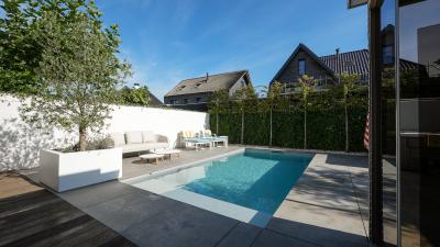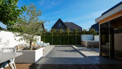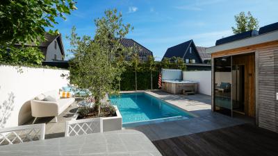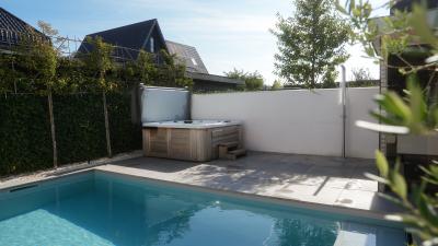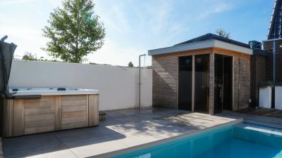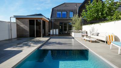 Het creëeren van een heerlijke plek met wellness producten welke positief effect hebben op je gezondheid, dat noemen wij thuiswellness. Deze klanten genieten daarvan. Wij mochten een stijlvol inbouwzwembad en luxe spa realiseren. De ruime spa heeft vier zitplekken en één ligplek. Het zwembad is voorzien van een lamellenafdekking, welke onder andere zorgt voor een schoner zwembad.